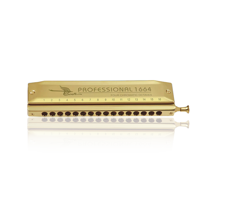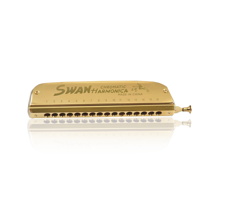 16孔64音半音階方形仿金激光口琴(塑盒)