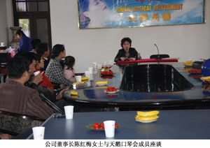 成立“靖江天鵝口琴會(huì )”的消息,引起社會(huì )各界廣泛關(guān)注。4月24號,報名參加口琴會(huì )的30余名口琴愛(ài)好者相聚在天鵝公司,他們參觀(guān)了口琴生產(chǎn)車(chē)間,并進(jìn)行了座談。座談會(huì )中86歲高齡的蔣偉老先生說(shuō):口琴簡(jiǎn)單易學(xué),價(jià)廉物美,很多音樂(lè )大師都是通過(guò)口琴步入音樂(lè )殿堂的,中國曾是亞州口琴的搖籃,四、五十年代在東南亞影響很大,但這些年來(lái)我感到吹口琴的人越來(lái)越少,作為我們靖江有較大的口琴生產(chǎn)基地,是得天獨厚的條件,因此天鵝樂(lè )器公司組織成立“天鵝口琴會(huì )”是傳承民族樂(lè )器的一個(gè)舉措,我希望要辦成功,把口琴吹奏代代相傳。天鵝樂(lè )器有限公司董事長(cháng)陳紅梅表示,今后將定期開(kāi)展藝術(shù)交流活動(dòng)。