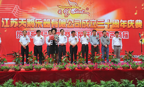 三十年的耕耘,釀造了天鵝人的笑容,三十年的付出,迎來(lái)天鵝輝煌業(yè)績(jì)。經(jīng)過(guò)三十年的發(fā)展,我公司已成為全國生產(chǎn)規模大、品種規格全、專(zhuān)業(yè)技術(shù)強的口琴生產(chǎn)企業(yè),產(chǎn)品連續多年市場(chǎng)銷(xiāo)售靠前,多次被樂(lè )器協(xié)會(huì )評為中國樂(lè )器行業(yè)強勢公司和“中國樂(lè )器行業(yè)50強”企業(yè)。產(chǎn)品多次榮獲“江蘇省著(zhù)名商標”和“江蘇省名牌產(chǎn)品”。 慶典大會(huì )上,中國樂(lè )器協(xié)會(huì )安志理事長(cháng)、口琴專(zhuān)業(yè)委員會(huì )副會(huì )長(cháng)周偉儀及市領(lǐng)導尤紅,分別對我公司建廠(chǎng)三十周年表示祝賀,并希望天鵝公司在今后的發(fā)展中注重產(chǎn)品升級,加強技術(shù)改造、市場(chǎng)管理和品牌建設,將“天鵝”打造成國際知名品牌,開(kāi)啟企業(yè)發(fā)展新征程。