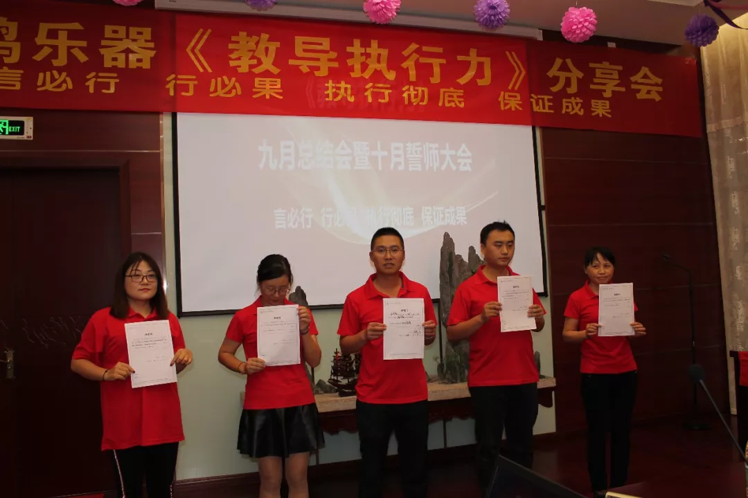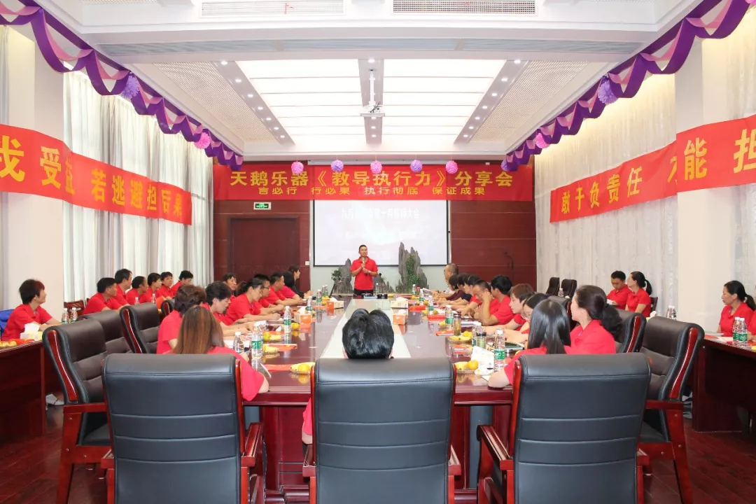 我公司早在9月15日就舉行了天鵝樂(lè )器團隊《教導執行力》落地執行分享會(huì ),參與《教導執行力》二期培訓的學(xué)員們在現場(chǎng)分享了三天學(xué)習的感悟,此次的月度總結會(huì )議,也是對前期所制定目標的成果的檢驗,五位學(xué)員代表現場(chǎng)分享了各自目標的完成情況,分析得全面,堅決做到目標完成者有數據支持,未完成者有原因與措施提供,未完成目標的學(xué)員也堅守承諾,現場(chǎng)進(jìn)行了深蹲和俯臥撐的懲罰。
