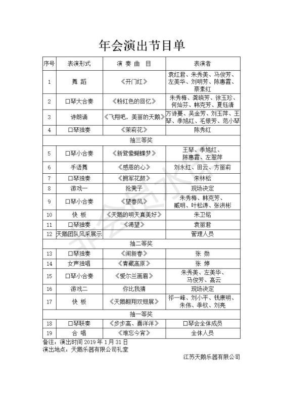 天鵝樂(lè )器2018年度總結表彰大會(huì )暨新年聯(lián)歡會(huì )