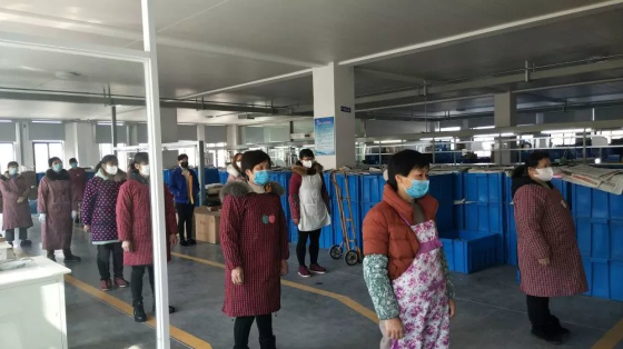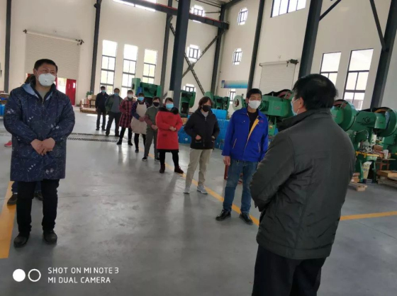 2月20日上午,在鎮防疫工作駐廠(chǎng)員的指導監督下,疫情防控領(lǐng)導小組成員根據成員的分工,分批、有序地對每位進(jìn)廠(chǎng)員工進(jìn)行消毒、體溫檢測、派發(fā)口罩等物資,董事長(cháng)及鎮防疫工作駐廠(chǎng)員對部門(mén)負責人以及車(chē)間主任宣傳防疫知識,并要求傳達給每一位員工,做到戴口罩、勤洗手、多通風(fēng)。