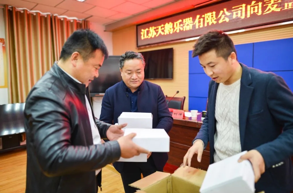 最后,再次感謝江蘇天鵝樂(lè )器有限公司對我縣教育事業(yè)的無(wú)私援助!祝愿貴公司乘著(zhù)新時(shí)代的春風(fēng)再創(chuàng )佳績(jì)、再創(chuàng )輝煌!